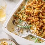 This Healthy Green Bean Casserole recipe offers a fresh and flavorful twist on the classic comfort dish by using fresh green beans, a creamy mushroom sauce, and homemade crispy onion topping. Perfectly balanced with fresh thyme and garlic, this casserole is baked to golden, bubbly perfection, making it an ideal side dish for family dinners and holiday meals.