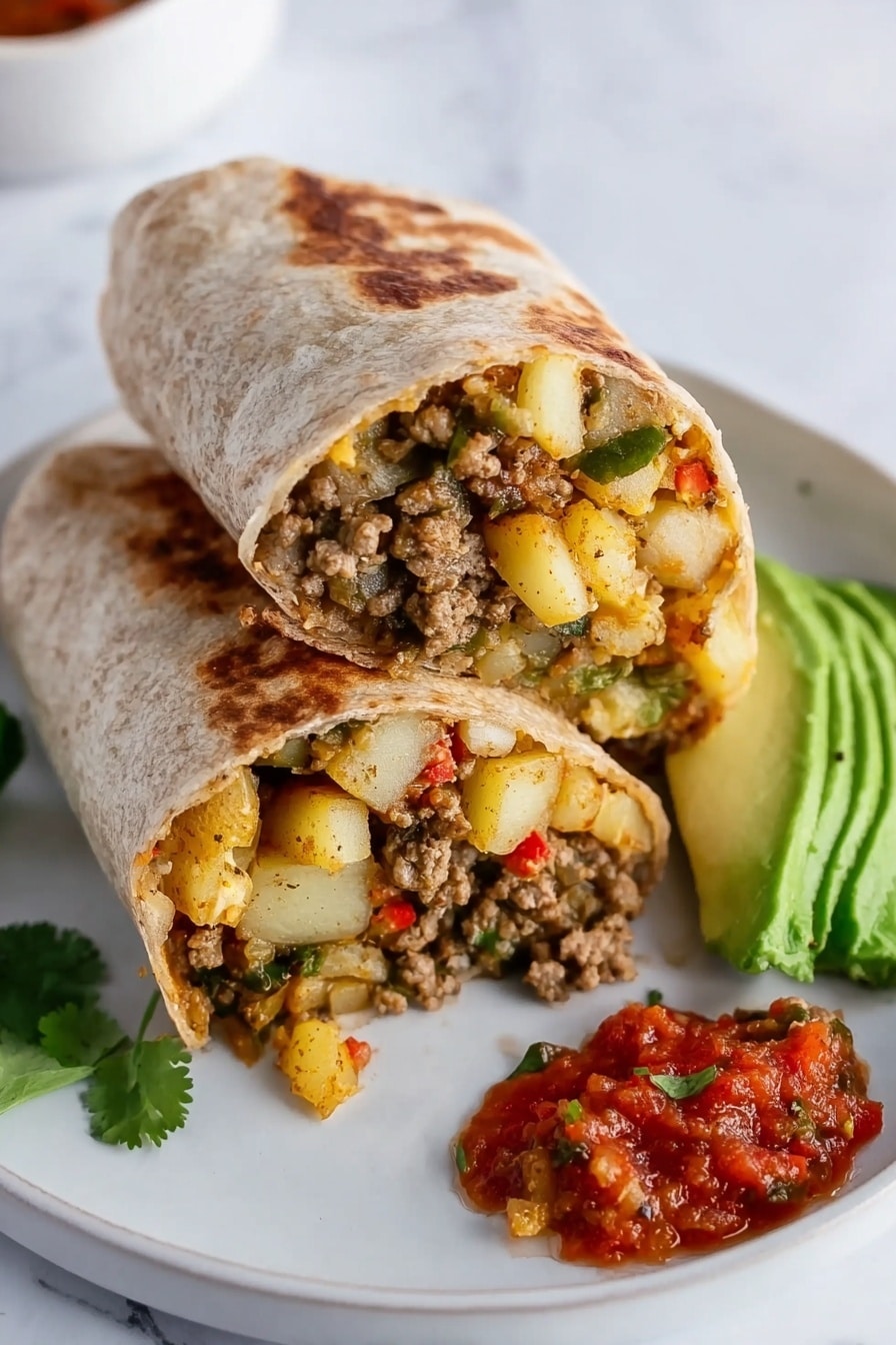 I love topping these burritos with a dollop of creamy Greek yogurt — it adds tang without the heaviness of sour cream. Fresh cilantro leaves, sliced avocado, and a squeeze of lime really brighten things up, too. If you like spice, a drizzle of hot sauce or a spoonful of chipotle salsa amps up the flavor beautifully.