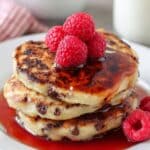 Delightfully fluffy heart-shaped pancakes studded with mini chocolate chips, perfect for a special breakfast or brunch. These pancakes combine a tender, thick batter with the fun of shaping and the sweetness of chocolate, creating a charming and delicious start to any day.