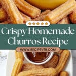 This homemade churros recipe guides you through creating crispy, golden fried dough pastries rolled in cinnamon sugar, served with a rich and smooth dark chocolate dipping sauce. Perfect for a sweet treat or dessert, these churros are fried to perfection with a classic star shape, combining crunchy outside texture with a soft, tender inside.