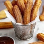 - Coat and Serve: While still warm, roll fried churros in the cinnamon sugar to coat evenly. Serve immediately with the prepared chocolate dipping sauce for dipping.