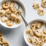The beauty of this Homemade Cookie Cereal Recipe is how simple the ingredients are, yet they come together to create these deliciously small crispy cookies that stay crunchy in milk. A few quick tips: be sure to use quality butter for that rich flavor and don’t skip chilling the dough to help keep the shape perfectly tiny and crisp.