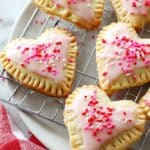 - Decorate: Spoon the icing onto the cooled pop tarts and spread it evenly using the back of a spoon or a small spatula. Decorate with red and pink sprinkles to finish.