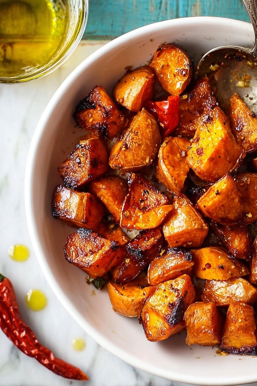 I often top these sweet potatoes with a sprinkle of fresh chopped parsley or cilantro for brightness and a pop of color. Sometimes, a few toasted pepitas add a lovely crunch and nutty contrast that elevates the dish. If you like a creamy finish, a dollop of Greek yogurt or sour cream plays beautifully against the sweet-spicy combo.