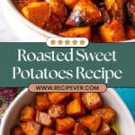 3. Flip and Continue Roasting: Remove the baking dish from the oven and gently flip the sweet potatoes to promote even caramelization. Return to the oven and roast for an additional 20 minutes, or until the sweet potatoes are tender, caramelized, and slightly charred in spots.