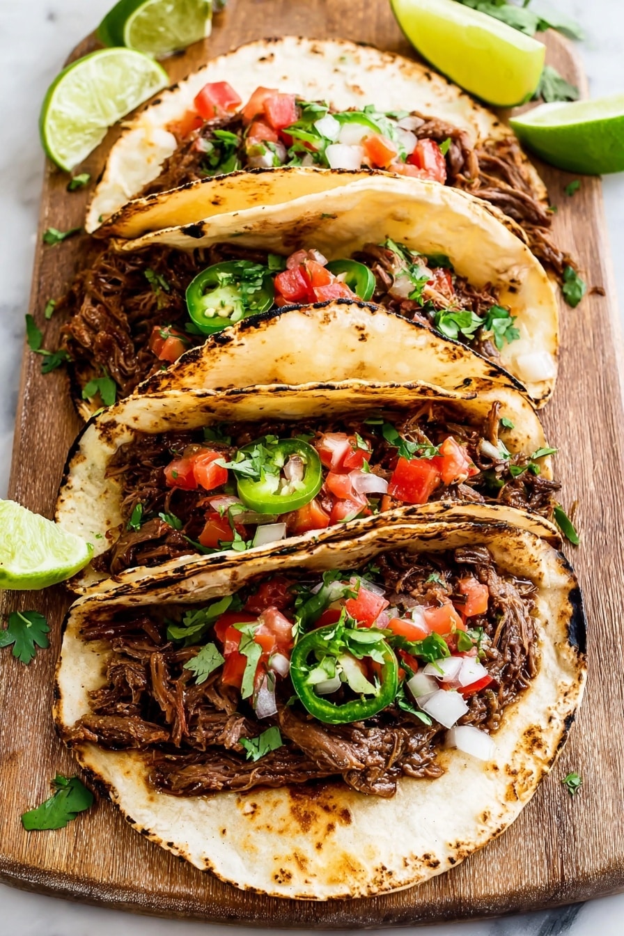 When I serve this barbacoa, I love topping it with fresh cilantro, diced white onion, and a squeeze of extra lime for a pop of brightness. Crumbled queso fresco or a dollop of sour cream add a creamy contrast, while sliced avocado offers richness that balances the smoky heat perfectly.