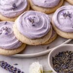 Enjoy these delicate London Fog Cookies infused with fragrant Earl Grey tea and lavender. Perfectly tender with a subtle citrusy bergamot flavor balanced by floral lavender sugar coating and topped with a creamy lavender-infused cream cheese frosting. A sophisticated treat inspired by the classic London Fog tea latte.