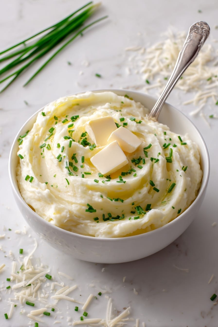 Top your whipped potatoes with freshly chopped chives and a few pats of butter if you like. The green pop of the chives adds a fresh brightness that balances the richness beautifully. Serve immediately and get ready for the compliments to roll in!
