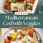 - Add Cod & Roast: After 10 minutes, place the seasoned cod filets on top of the vegetables in the baking dish. Return to the oven and bake for an additional 10-12 minutes until the cod is fully cooked and flakes easily with a fork.