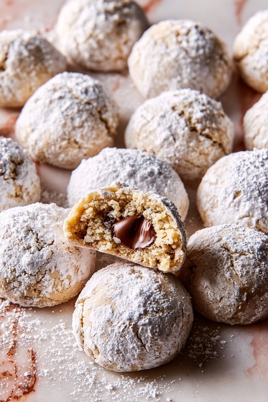 Delightful Nutella-Stuffed Snowball Cookies with toasted hazelnuts, buttery dough, and a sweet Nutella center. These tender, melt-in-your-mouth cookies are coated in confectioners’ sugar, perfect for festive occasions and cookie swaps.