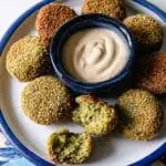 - To make ahead and freeze: form uncooked falafel patties and place them on a parchment-lined baking sheet. Once firm, transfer to a freezer-safe bag and freeze for up to one month. Bake from frozen, adding about 5 minutes extra to the baking time.