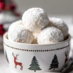 6. Cool and Coat: Let the cookies cool on the baking sheet for 5 minutes. While warm, roll each cookie in a bowl of confectioners’ sugar, coating fully. Transfer to a wire rack to cool completely, then roll again in confectioners’ sugar to create the classic snowball appearance and texture.