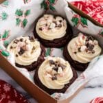 You can substitute vegan butter and dairy-free chocolate chips to make a dairy-free version. The peppermint buttercream may require using a non-dairy milk and a vegan confectioners sugar blend.