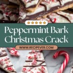 This Peppermint Bark Christmas Crack recipe combines salty crackers with buttery toffee, rich dark chocolate, and creamy white chocolate infused with peppermint extract. The festive treat is topped with crushed candy canes for a crunchy, minty finish perfect for holiday gifting or enjoying at home.