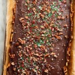 This Pretzel Toffee recipe combines the perfect balance of sweet and salty flavors with the crunch of pretzel snaps topped with rich caramel and smooth melted dark chocolate. Finished with optional toppings like pecans, sprinkles, or sea salt, this easy-to-make treat is perfect for snacking, gifting, or serving at parties.