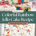 This Rainbow Jello Cake Recipe comes together beautifully with a handful of everyday ingredients. The key is using a simple white cake base that lets the colorful jello flavors shine, plus some whipped topping to mellow it all out.
