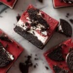 This Red Velvet Fudge with Oreos is a rich and creamy dessert combining the classic flavors of red velvet and cookies and cream. Made with white and semi-sweet chocolate chips, mini marshmallows, and crushed Oreos, this fudge is easy to prepare on the stovetop and chilled until perfectly set for a decadent, delightful treat.