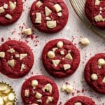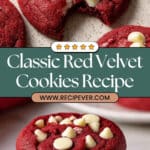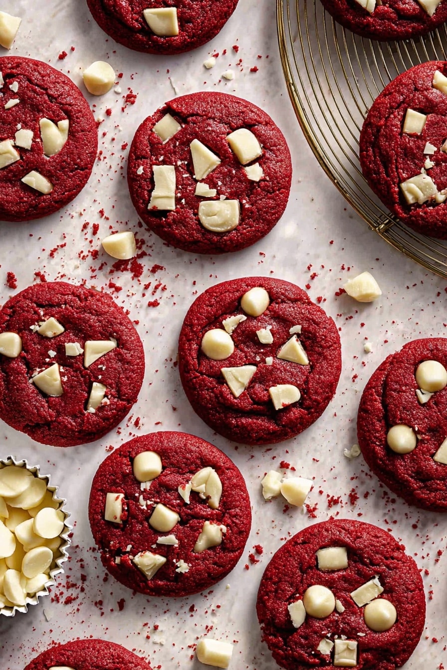 Delightfully soft and chewy Red Velvet Cookies bursting with rich cocoa flavor and creamy white chocolate chunks. These cookies feature a classic red velvet taste with a moist, tender texture, perfect for any occasion or holiday treat.