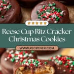 These Reese Cup Ritz Cracker Christmas Cookies are a festive and indulgent treat combining salty and sweet flavors. Layers of crunchy Ritz crackers sandwich gooey Reese Cup Thins, then dipped in melted chocolate and decorated with holiday sprinkles for a perfect holiday cookie that’s simple to make and sure to impress.