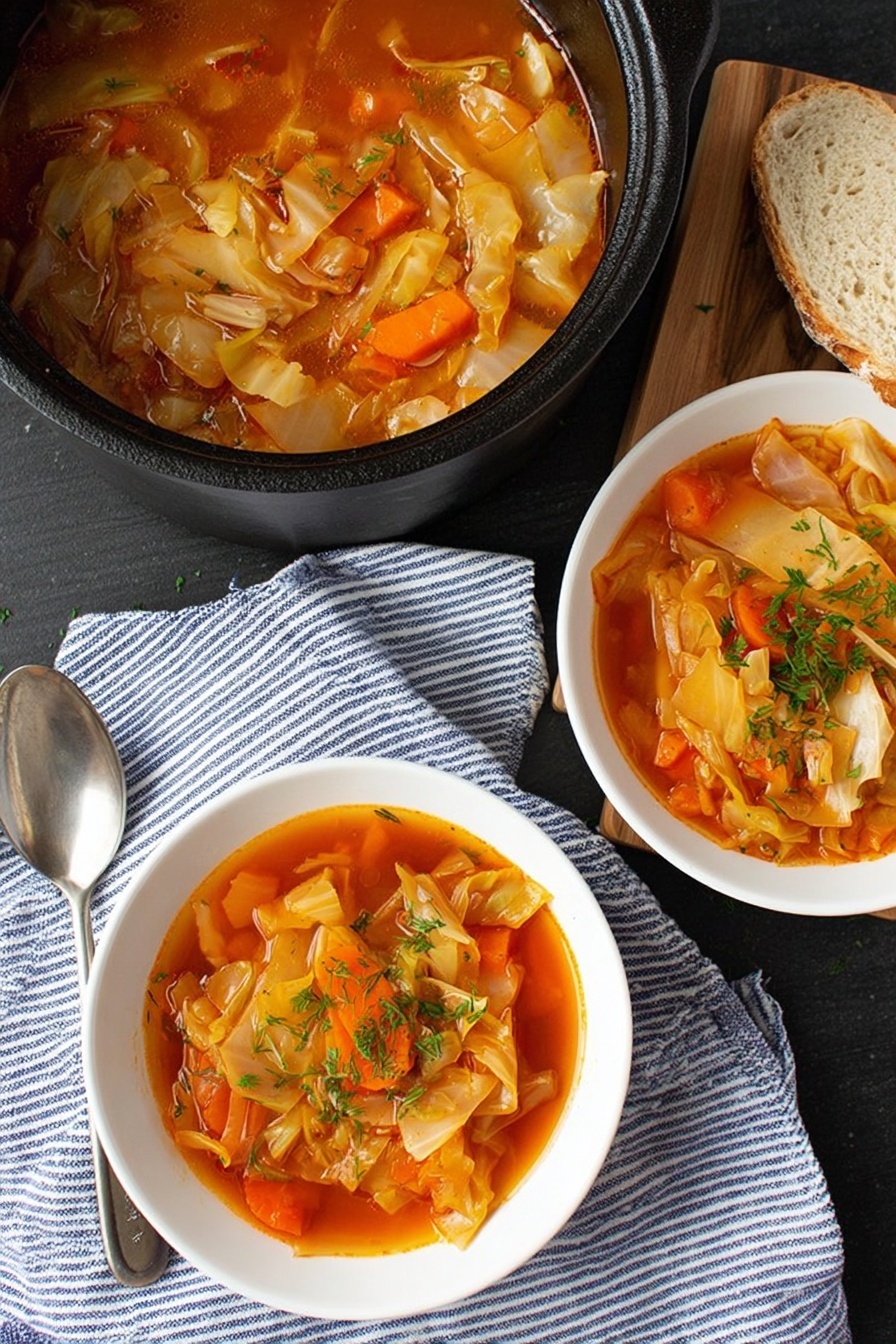 This Amazing Roasted Cabbage Soup features roasted cabbage rounds that impart a rich, caramelized flavor, combined with sautéed carrots, onions, and a savory broth enriched with tomatoes and a splash of red wine vinegar. The soup is hearty, slightly tangy, and perfect for a comforting meal with simple, wholesome ingredients.