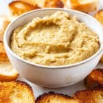 This Eggplant Dip, known as Salata de Vinete, is a traditional Romanian appetizer made by roasting or grilling eggplants until soft, then blending them with onion, salt, and sunflower oil to create a creamy, smoky-flavored spread. Perfectly chilled, it makes a delightful accompaniment to fresh bread or crackers.