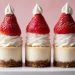 These delightful Santa Hat Cheesecake Bites are a festive and easy-to-make holiday treat featuring creamy cheesecake, fluffy whipped cream, and fresh strawberries arranged to resemble Santa hats. Perfect for holiday parties or a seasonal dessert, these bite-sized delights require no baking and come together in just 10 minutes.
