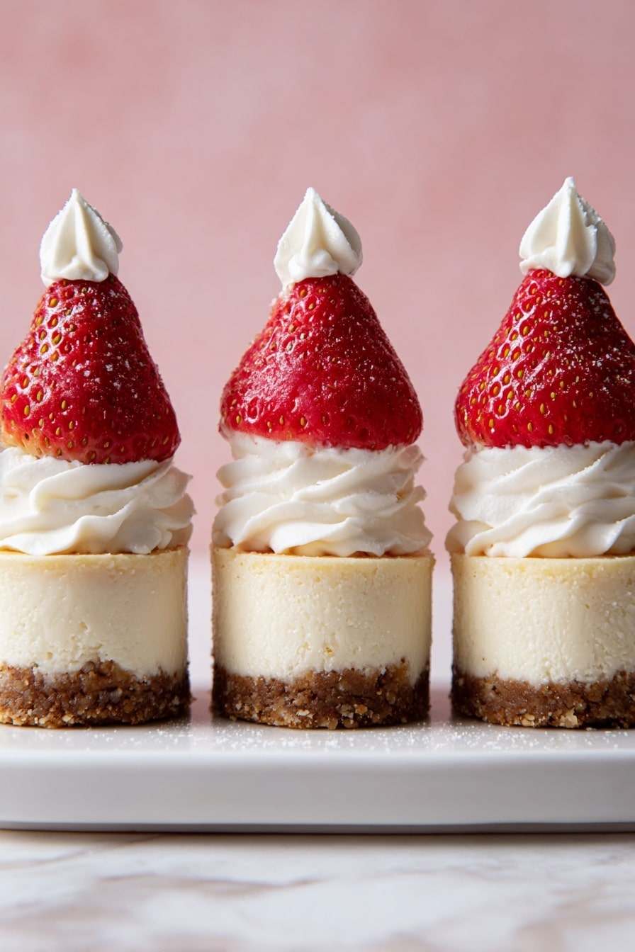 Try arranging your Santa Hat Cheesecake Bites Recipe on a rustic wooden board or festive holiday plates to make them part of your decor. I once presented them inside a glass cloche surrounded by twinkling fairy lights—it was a magical conversation starter! You can also place them individually in mini cupcake liners for easy grab-and-go serving.