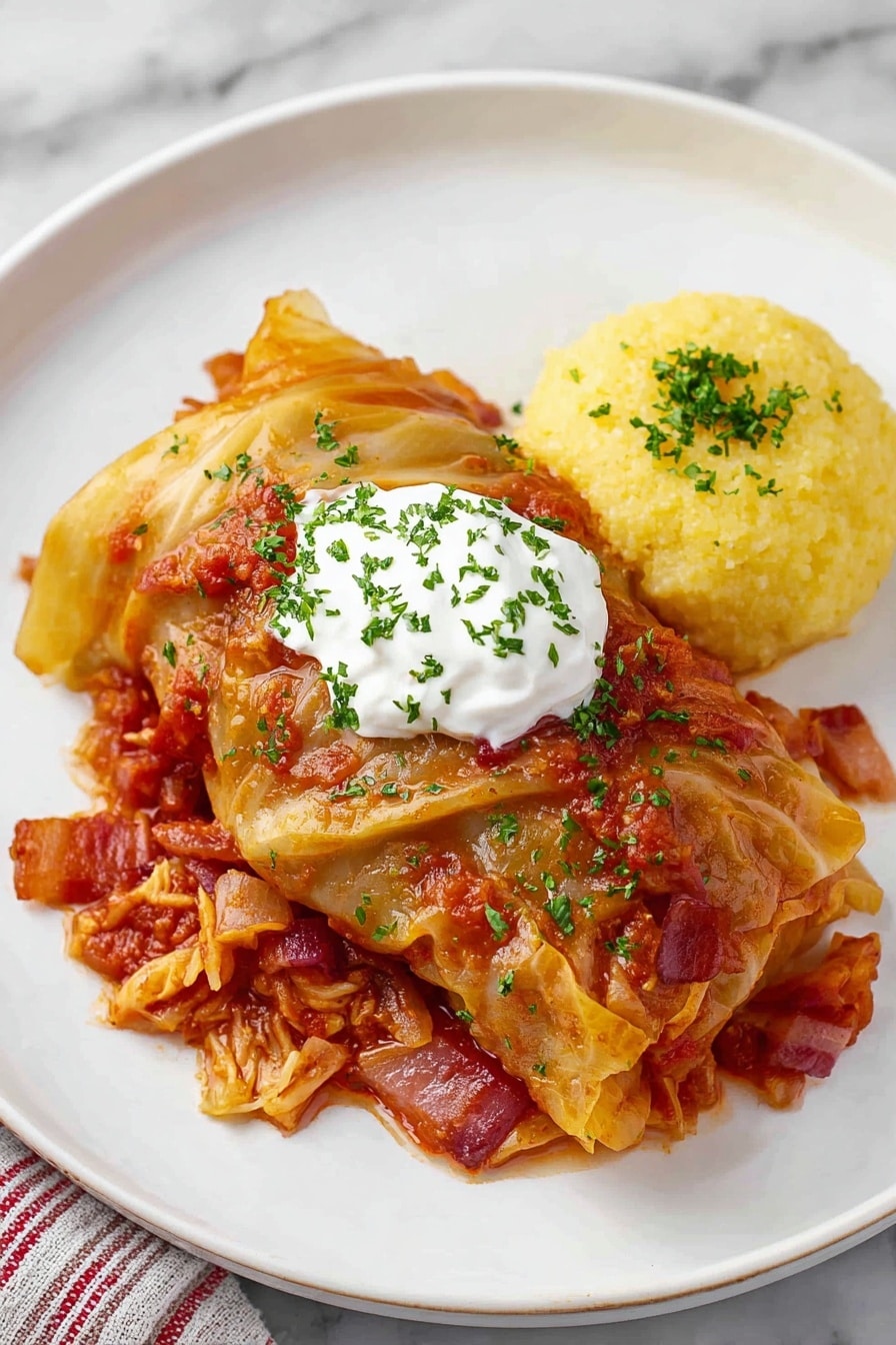 For special occasions, I like arranging the cabbage rolls in a circular pattern on a platter, garnished with fresh herbs and a drizzle of tomato sauce on top — it makes the dish look extra inviting. You could also serve individual cabbage rolls in small bowls with a spoonful of sauce and a sprig of dill for a cozy, family-style vibe at the table.
