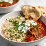 - Serve: Serve the chicken tikka masala hot alongside brown rice, pita bread, or naan. Garnish with a dollop of plain Greek yogurt and freshly chopped cilantro for added creaminess and freshness. Store leftovers in the refrigerator for up to 4 days.