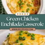 8. Garnish and serve: Sprinkle additional chopped green onions over the casserole just before serving. Serve warm and enjoy a hearty green chicken enchilada casserole!