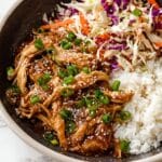 Serve your Slow Cooker Korean BBQ Chicken over warm rice, and don’t skip the green onions and sesame seeds on top—they add a fresh crunch and a nutty pop that’s just irresistible.