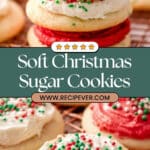 These Soft Christmas Sugar Cookies are perfectly tender and lightly sweetened, making them an ideal holiday treat. Made with cake flour and a blend of butter and shortening for extra softness, these cookies bake up into delicate rounds that are easily topped with creamy, colorful frosting and festive sprinkles. Perfect for sharing during the holidays or decorating with family.