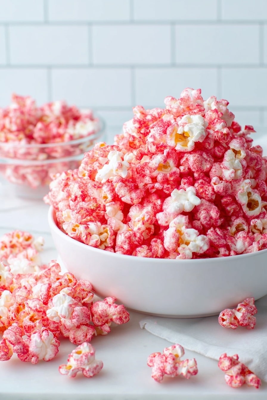 This Cinnamon Popcorn recipe combines the warmth of cinnamon-flavored Red Hot candies with a buttery, sweet glaze to create a deliciously spicy and crunchy snack. Perfect for movie nights or festive gatherings, this treat features popped popcorn coated with a hot syrup mixture and baked for a crisp texture.