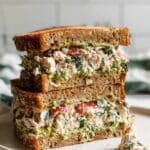 A quick and flavorful Spicy Tuna Salad recipe featuring a creamy tuna mousse with Greek yogurt, fresh dill, and tangy capers, served as a delicious sandwich with avocado, pesto, and tomato on toasted whole wheat bread. Perfect for a healthy and satisfying lunch in just 5 minutes.