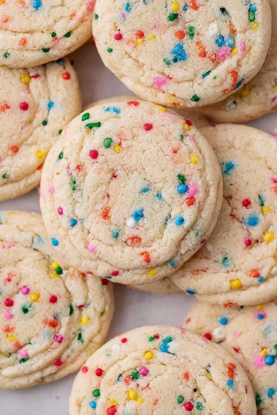 These sprinkle sugar cookies are soft, buttery, and loaded with colorful sprinkles, making them perfect for any festive occasion or just a delightful treat. This easy recipe yields tender cookies with a subtle sweetness and a fun crunch from the sprinkles, baked to perfection in just 8 minutes.