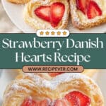 This Strawberry Cream Cheese Danish Hearts Recipe has become one of my go-tos when I want to impress with minimal effort. There’s something so satisfying about pulling these golden, flaky pastries out of the oven and seeing those juicy strawberries peek through that creamy filling. Whether you’re sharing them with loved ones or indulging on your own, they’re just the kind of treat that makes the kitchen feel cozy and the day a little sweeter. Give it a try—I promise it’ll be one of those recipes you come back to again and again.