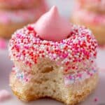 Strawberry Kiss Cookies are soft, sweet treats made with funfetti sugar cookie mix, cream cheese, and topped with delicious Hershey’s Strawberry Ice Cream Cone Kisses. Perfect for parties or a special homemade dessert, these cookies combine a funfetti base with a unique and colorful twist.