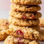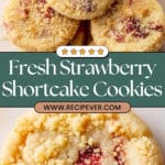 These Strawberry Shortcake Cookies combine buttery shortbread crumbs with fresh diced strawberries for a delightfully chewy and crumbly treat. The cookies are baked to a perfect golden brown, topped with crunchy baked shortbread crumbs, creating a luscious texture contrast that captures the classic flavors of strawberry shortcake in cookie form.