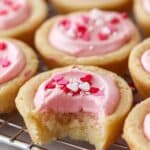 Delightful sugar cookie cups filled with creamy buttercream frosting, perfect for bite-sized treats. These sweet, buttery cookies are baked in mini muffin tins and shaped into cups to hold rich, colorful frosting topped with sprinkles—ideal for parties or any sweet craving.
