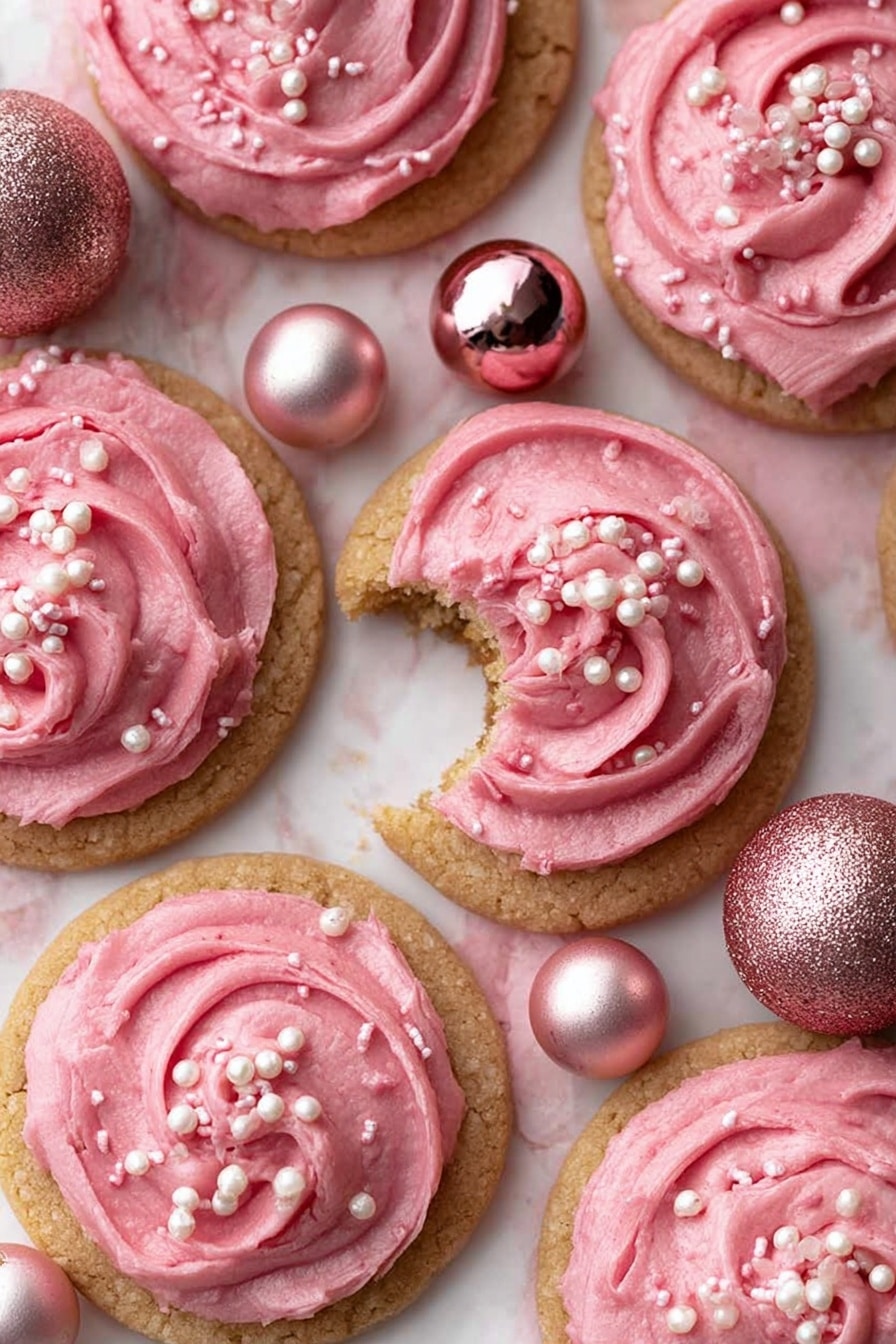 Fill a piping bag fitted with your favorite decorative tip (I use a Wilton 2D) with the frosting. Once your cookies have cooled, pipe a generous swirl or dollop onto each one. Sprinkle a few pink sprinkles on top for that final festive touch. These little bites look utterly charming and taste like a dream—so don’t be shy with the frosting!