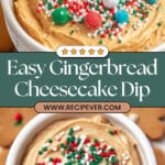 A festive and creamy gingerbread cheesecake dip perfect for holiday gatherings. This easy no-cook dip combines the warm spices of gingerbread with a smooth cream cheese base, sweetened with molasses and powdered sugar, and lightened with whipped topping. Serve with graham crackers, ginger snaps, or fruit for a delicious holiday treat.