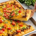 This Homemade Taco Pizza combines the savory flavors of seasoned ground beef, melted cheese, and fresh vegetables on a crispy crescent dough crust. Easy to prepare and perfect for family dinners or casual gatherings, it offers a delightful twist on traditional pizza with a zesty taco flair.