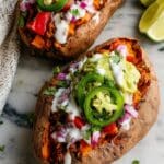 This Easy Taco Stuffed Sweet Potatoes recipe is a delicious and comforting meal that combines perfectly roasted sweet potatoes with savory taco-seasoned ground meat and fresh toppings. It’s a wholesome, flavorful dish that comes together quickly and is perfect for a weeknight dinner or casual gathering.