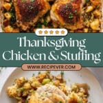 This Thanksgiving Chicken and Stuffing Bake with Easy Gravy is a comforting, all-in-one meal perfect for holiday dinners or cozy family meals. Juicy, bone-in, skin-on chicken thighs are seasoned, browned, and baked atop a flavorful herb-infused bread stuffing. A savory homemade gravy made from the chicken drippings completes the dish, making it rich and satisfying.