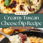This Tuscan Cheese Dip is a warm, creamy, and flavorful appetizer featuring a delightful blend of cream cheese, mozzarella, Parmesan, sour cream, sun-dried tomatoes, and spinach. Baked to perfection with a golden, bubbly cheese topping, it’s perfect for serving with crostini or chips for a cozy gathering or party indulgence.