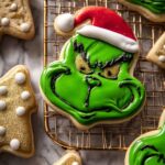 - Decorate the Cookies: Use a piping bag or a Ziploc bag with a small corner snipped off to pipe the icing onto cooled cookies. Decorate with sprinkles, vanilla sugar, or edible gold dust as desired. For snowflake cookies, pipe lines and dots to enhance the design. For Christmas trees, fill in the shape with icing and sprinkle with vanilla sugar. For the Grinch, use edible gold dust for the eyes and add details like eyebrows and mouth with dyed icing. Allow the icing to set completely, about one hour, before serving.