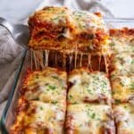 - Use no-boil lasagna noodles to save time and skip pre-cooking the pasta sheets.