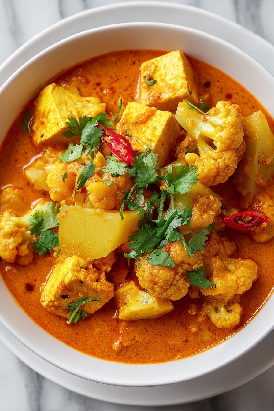 - Rich, Creamy Texture: Thanks to the coconut milk and ground cashews, the curry boasts a luscious, silky sauce that coats every veggie and tofu cube beautifully.